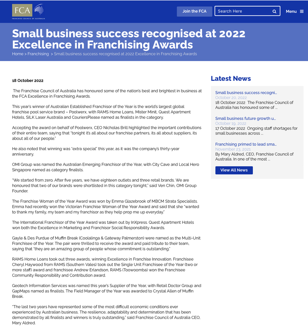 Featured by Franchise Council Australia (FCA)